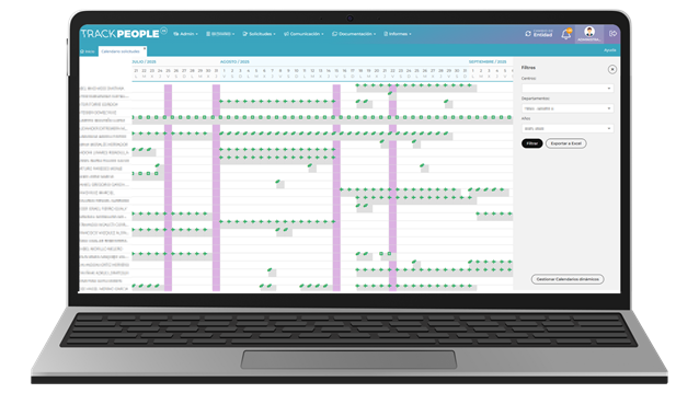 - Métricas automáticas y dashboards: Track People permite extraer informes personalizados, métricas como tasa de absentismo, duración media, por departamento, por equipo, etc., para entender la dimensión del problema.