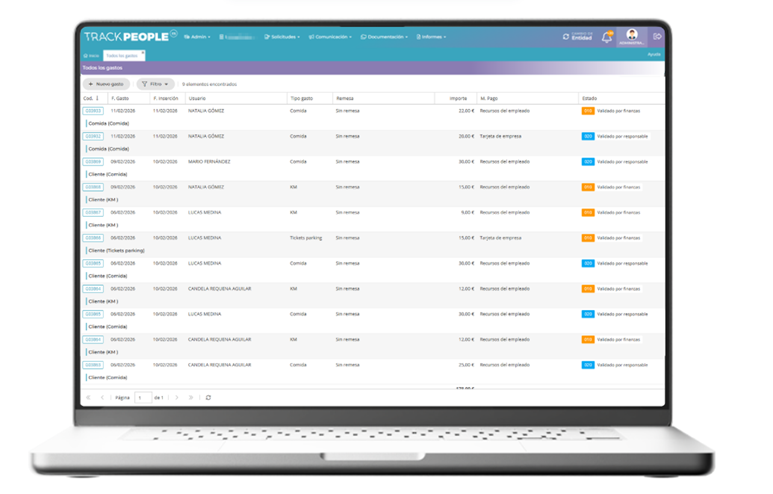 Con Track People, gestionar gastos deja de ser un lío y se convierte en un proceso claro, eficiente y confiable, ahorrando tiempo y protegiendo la relación con tu equipo.