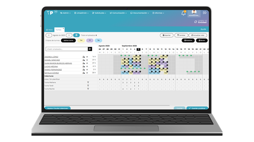 - Solicitud y validación con solo un clic: empleados y responsables gestionan turnos o días libres en tiempo real.