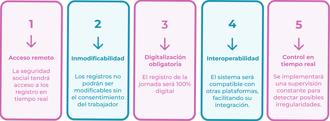 - Acceso remoto: Los trabajadores, sindicatos e inspección de trabajo podrán acceder al registro en tiempo real, garantizando la transparencia.