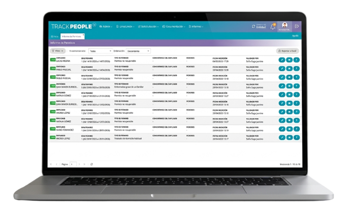 Con TrackPeople: el permiso se registra en el sistema, el día aparece como ausencia retribuida, no se esperan fichajes y toda la información queda lista para auditoría con sus justificantes correspondientes.