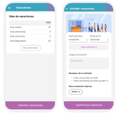 - Visualizar las vacaciones en un calendario compartido y actualizado.